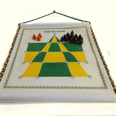 Goats and Tigers game is a Tamil strategic game, which is widely grown in South Asian Countries in different names. This game is played using a paper draft with specific phases and rules. Sometimes people draw on the floor using black paint to play the game.