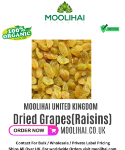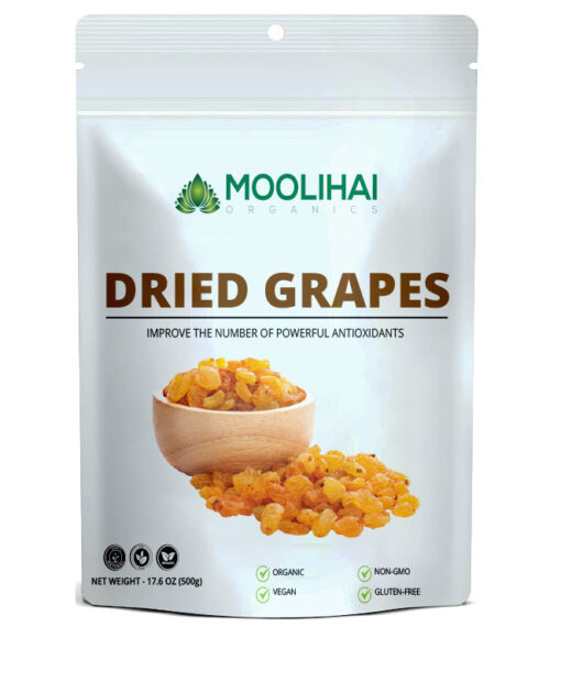 Introducing Moolihai UK’s Dried Grapes (Raisins)! Our 17.6 oz package of raisins is sourced from India and is packed with dietary fiber, carbohydrates, minerals, various vitamins, antioxidants, and other micronutrients. The raisins have a tart, tangy flavor and are perfect for cooking, snacks, tonic, and desserts preparation. Enjoy the natural sweetness of these dried grapes and reap the health benefits that come with it! Get your package of Moolihai UK’s Dried Grapes (Raisins) today!