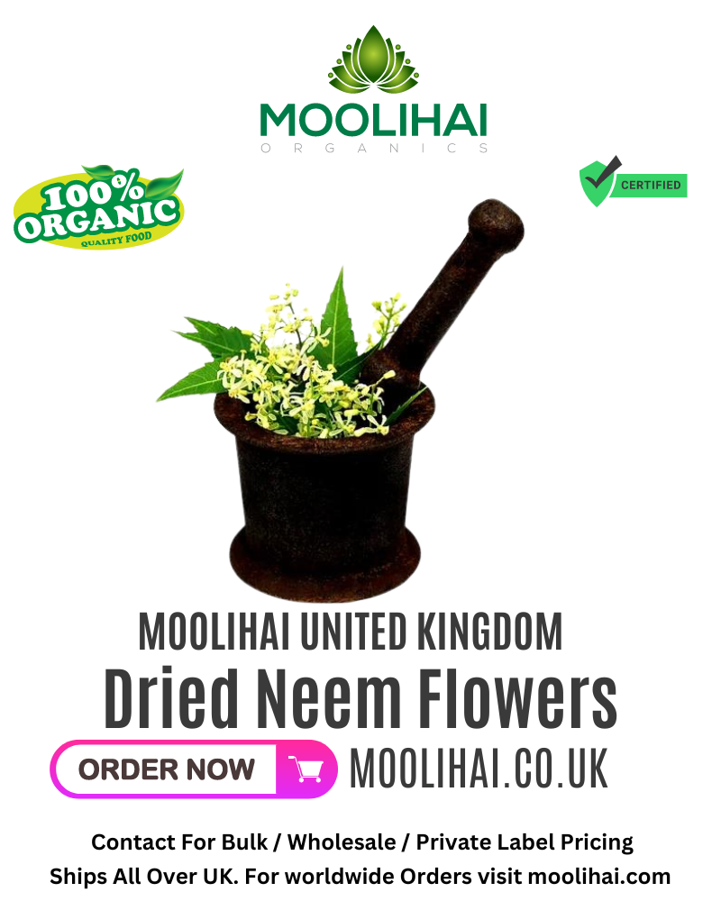 Introducing Moolihai UK’s Dried Neem Flowers! Our dried neem flowers are sourced from India and are perfect for adding a unique flavor to your dishes. These flowers are rich in antioxidants and have anti-inflammatory properties, making them a great addition to any diet. They can be used in teas, curries, soups, and more. The 3.5 oz package contains enough dried neem flowers to last you for months! Enjoy the health benefits of neem with Moolihai UK’s Dried Neem Flowers today!.