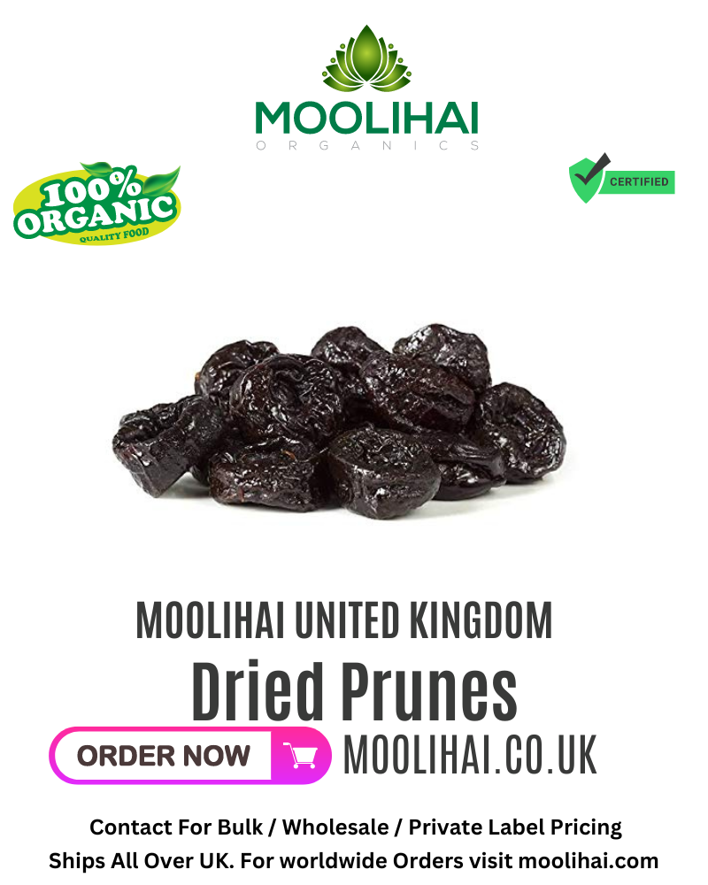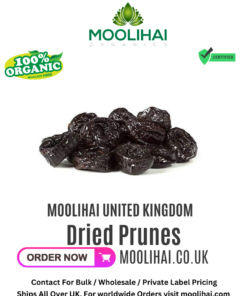 Introducing Moolihai UK’s Dried Prunes! Our 17.8 oz package of dried prunes is manufactured in India and is an excellent source of fiber, minerals, vitamins, antioxidants, and fiber. Prunes are known to reduce the risk of chronic diseases and help relieve constipation. The antioxidants in prunes help remove free radicals from your body and reduce inflammation. Enjoy the sweet taste of Moolihai UK’s Dried Prunes today!