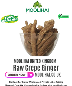 Moolihai UK Raw Crepe Ginger is a 100% natural and pure product, harvested from the best farms in India. It is dried and pulverized to make it easy to consume. This product helps in treating various ailments like headache, drowsiness, cough, vomiting, respiratory problems, bronchitis, asthma, obsession and breath shortness. It also helps in removing harmful intestinal worms in the stomach. With no side effects and 100% purity and nature, this product is a must-have for your daily health needs.