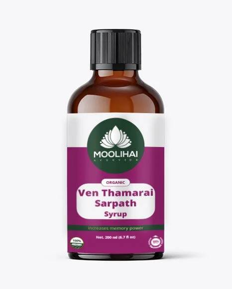 Ven Thamarai Sarpath is traditional medicine in syrup form made with 100% natural herbs and flowers that aids in reducing excess body heat, memory disorders, and epilepsy. This syrup is the best ayurvedic and Siddha medicine. It is a natural remedy for all kinds of illnesses, and it also improves memory power.